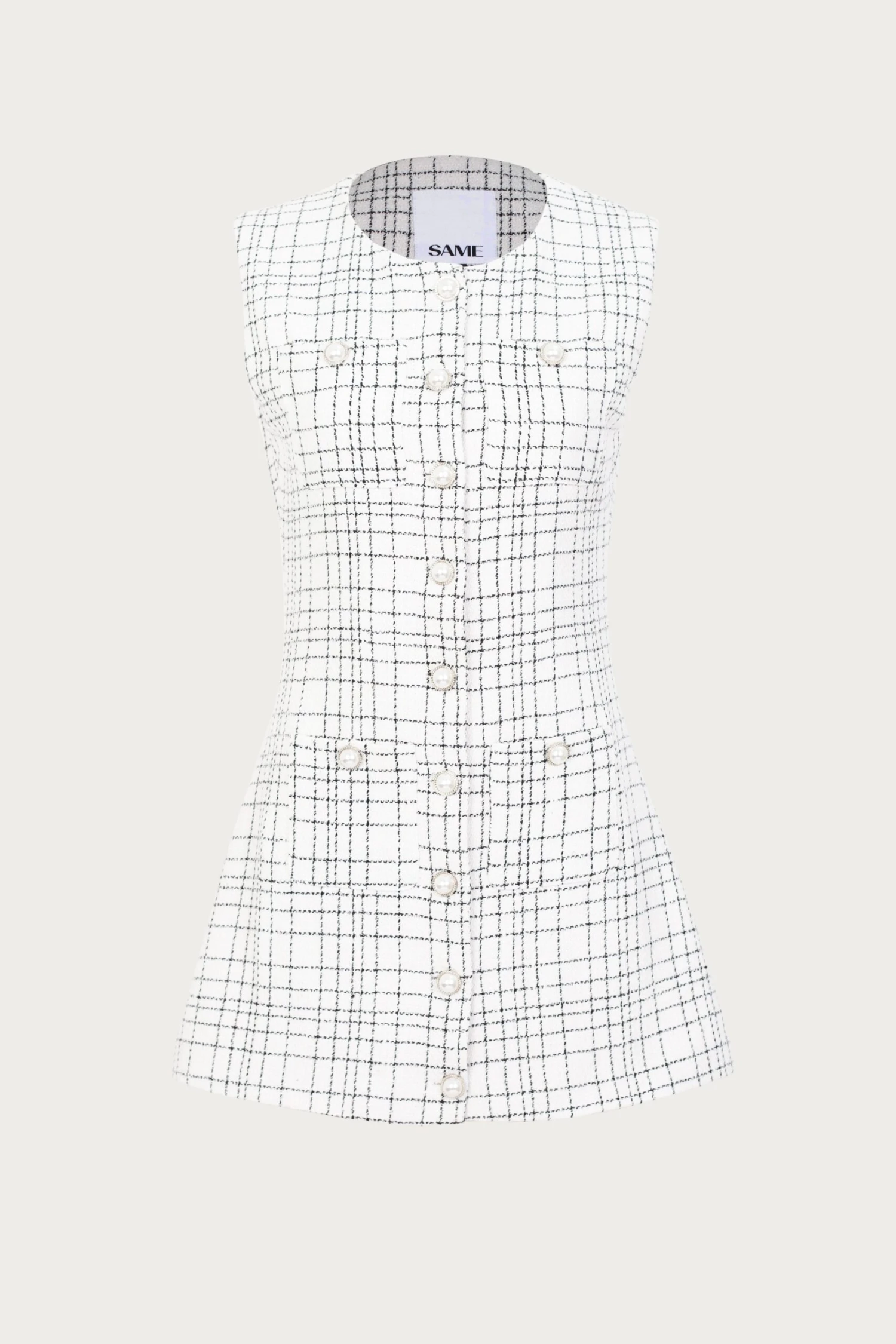 This Dress is inspired by our Grace collection. Short and sweet – the Grace Dress is a fitted, sleeveless, a-line mini dress with high scoop neckline, center front summarys, and pockets.
