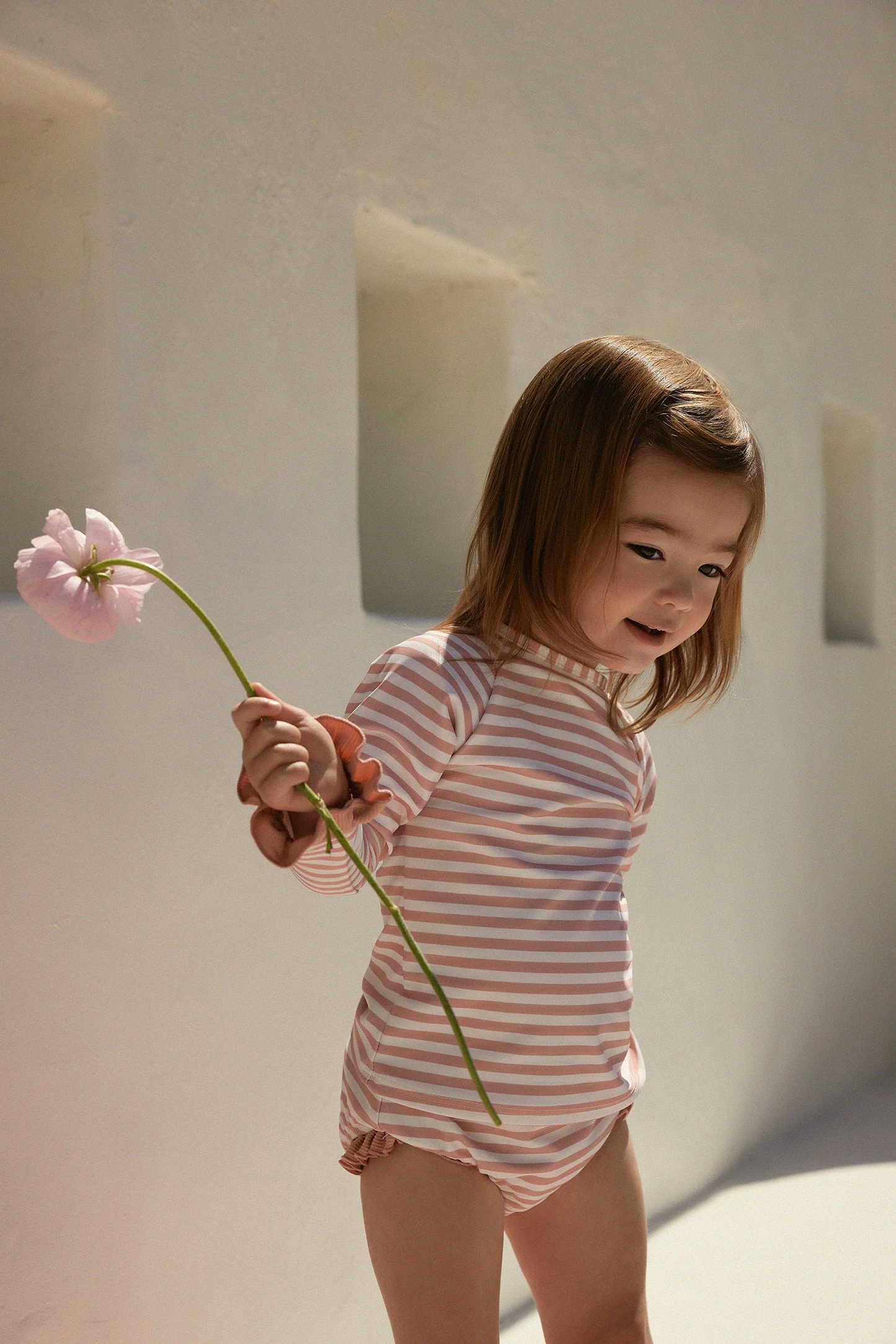 Ruffle Rashguard One Piece (blush Stripe/blush)(Ruffle Rashguard One Piece Blush Stripe Blush)